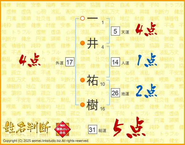 一井祐樹さんの総運は31画の5点!