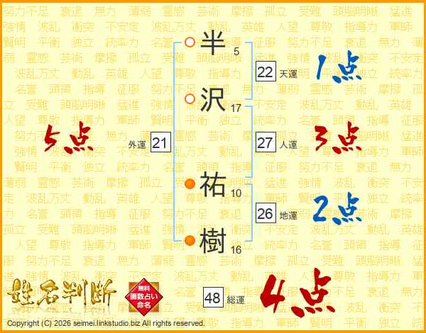 半沢祐樹さんの人運は27画の3点!