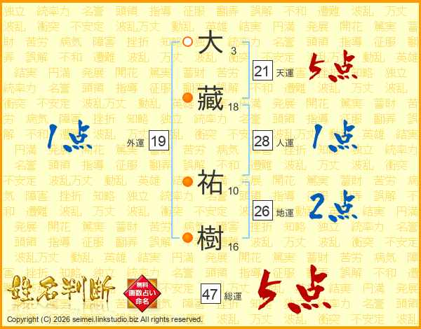 大藏祐樹さんの総運は47画の5点!
