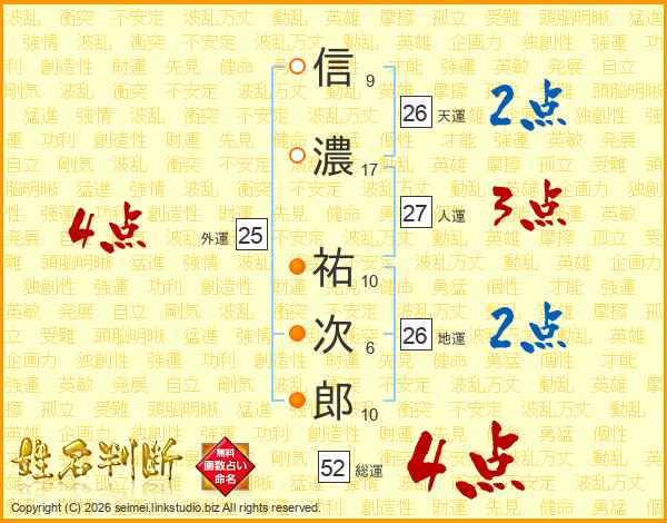 信(9画)濃(17画) 祐(10画)次(6画)郎(10画)