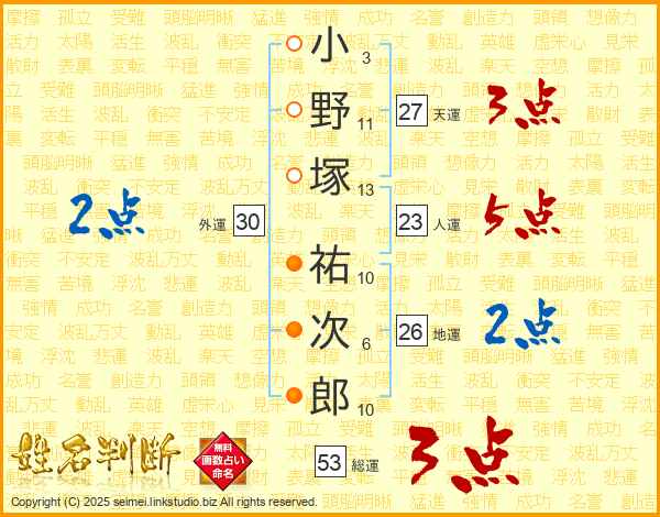 小(3画)野(11画)塚(13画) 祐(10画)次(6画)郎(10画)