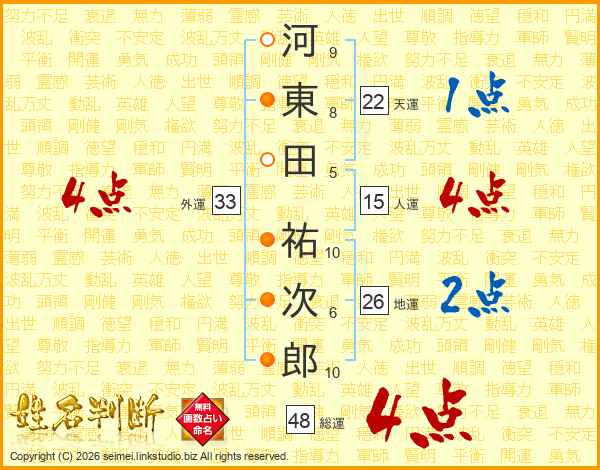 河東田祐次郎さんの総運は48画の4点!