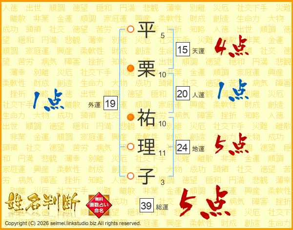 平栗祐理子さんの総運は39画の5点!