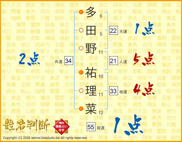 多田野祐理菜さんの天運は22画の1点!
