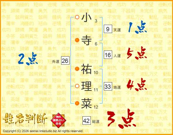 小寺祐理菜さんの総運は42画の3点!
