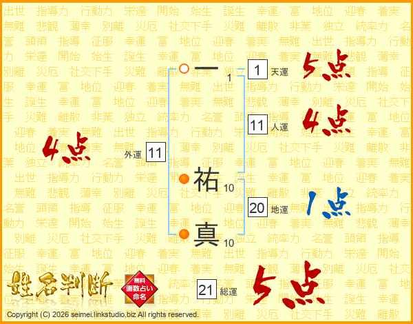 一祐真さんの総運は21画の5点!