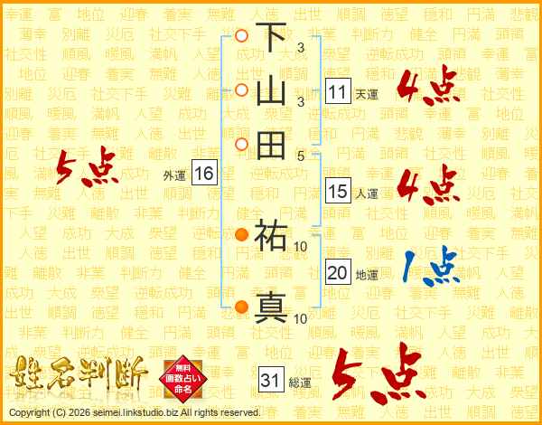下山田祐真さんの総運は31画の5点!