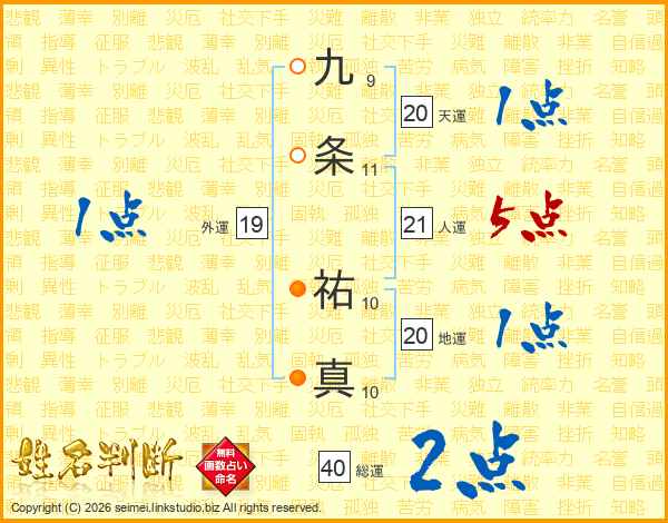 九条祐真さんの天運は20画の1点!