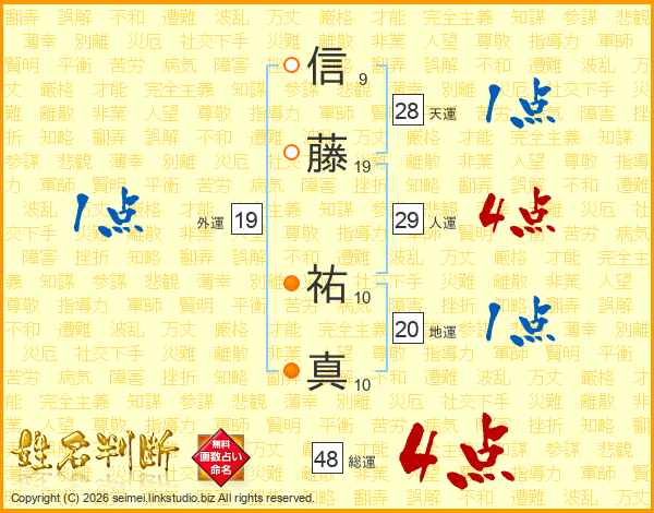 信藤祐真さんの総運は48画の4点!
