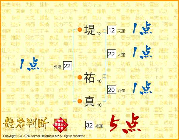 堤祐真さんの総運は32画の5点!