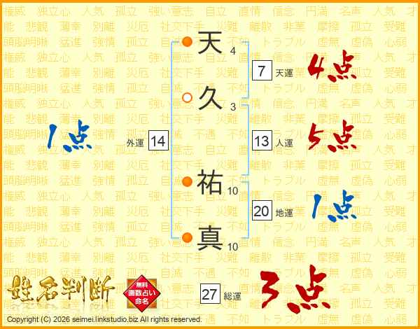 天久祐真さんの総運は27画の3点!