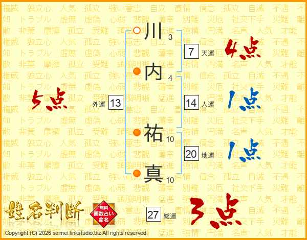 川内祐真さんの人運は14画の1点!
