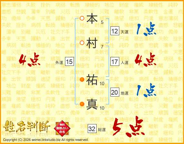 本村祐真さんの総運は32画の5点!