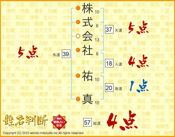 株(10画)式(6画)会(13画)社(8画) 祐(10画)真(10画)