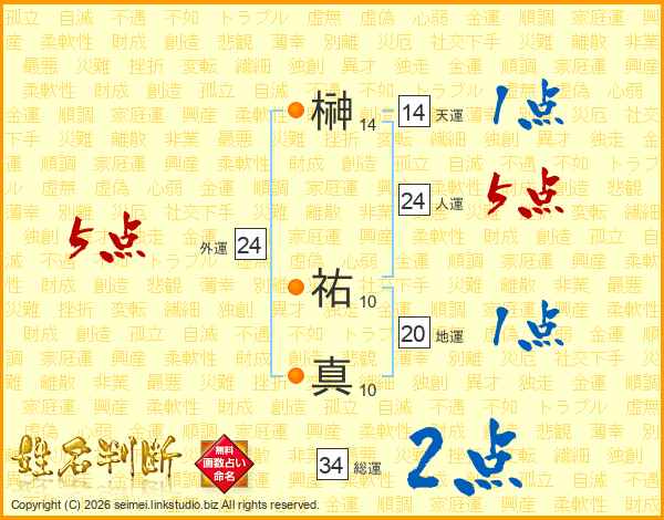 榊祐真さんの天運は14画の1点!