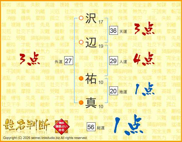 沢辺祐真さんの総運は56画の1点!