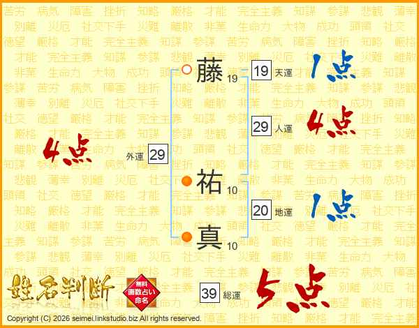 藤祐真さんの総運は39画の5点!