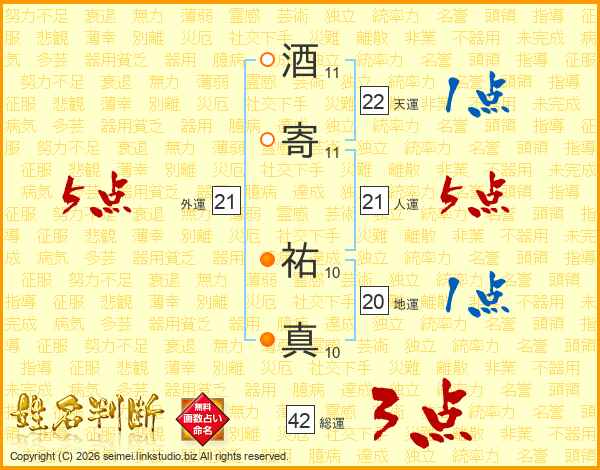 酒寄祐真さんの人運は21画の5点!