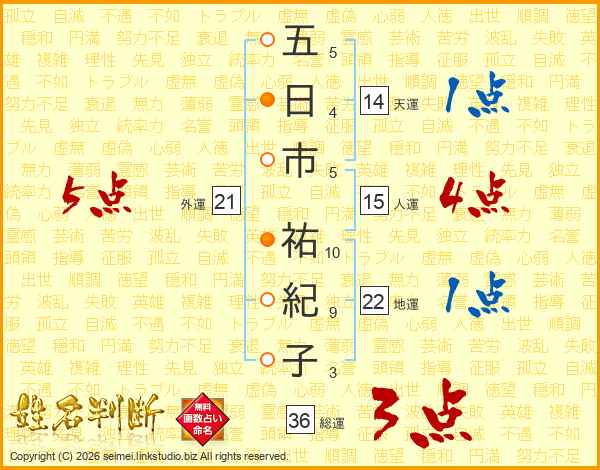 五日市祐紀子さんの外運は21画の5点!