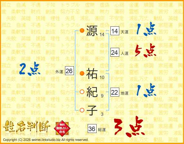 源祐紀子さんの外運は26画の2点!
