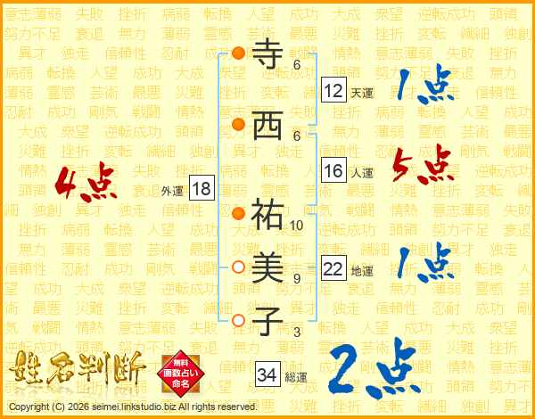 寺西祐美子さんの総運は34画の2点!
