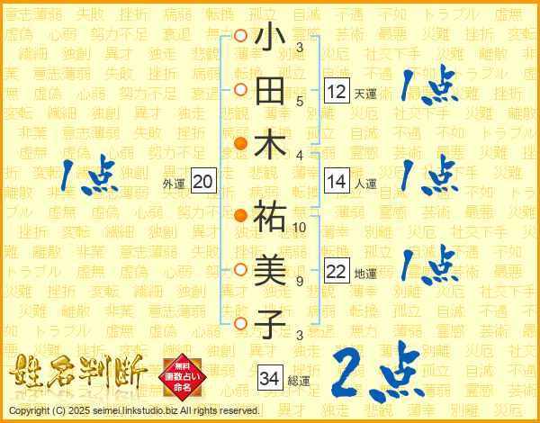 小田木祐美子さんの総運は34画の2点!