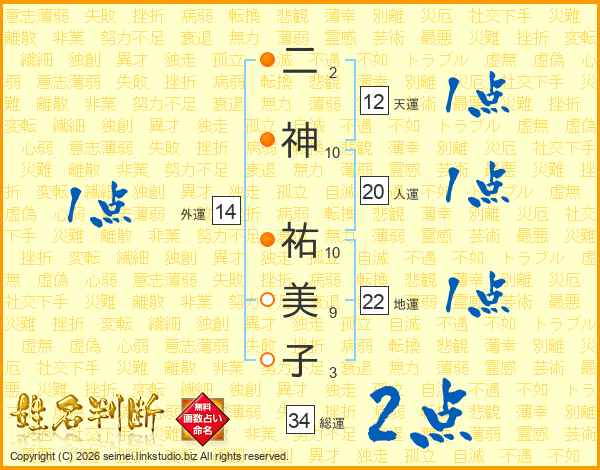 二神祐美子さんの人運は20画の1点!