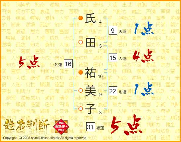 氏田祐美子さんの総運は31画の5点!