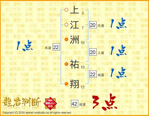 上(3画)江(7画)洲(10画) 祐(10画)翔(12画)