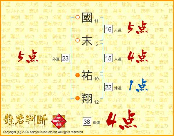 國末祐翔さんの総運は38画の4点!