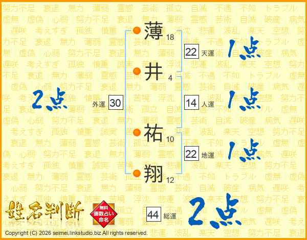 薄井祐翔さんの総運は44画の2点!
