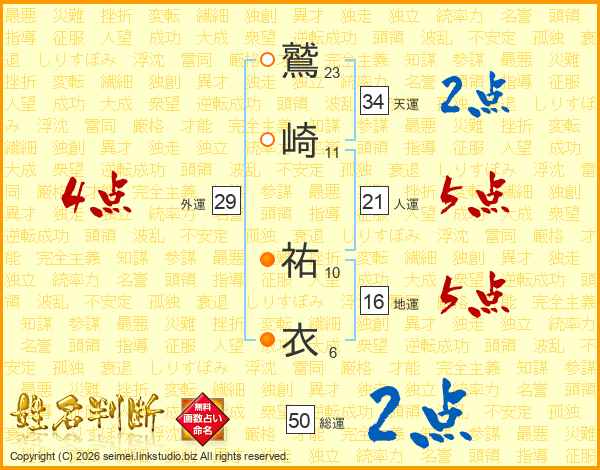 鷲崎祐衣さんの天運は34画の2点!
