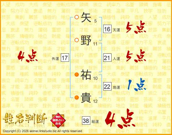 矢野祐貴さんの総運は38画の4点!