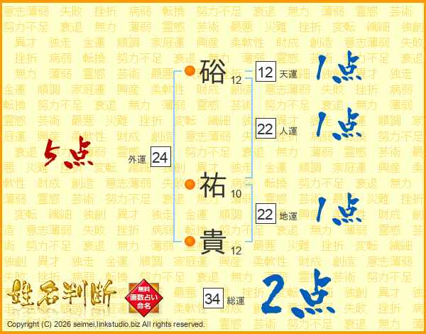 硲祐貴さんの人運は22画の1点!