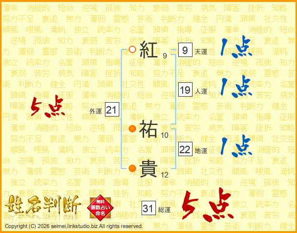 紅祐貴さんの総運は31画の5点!