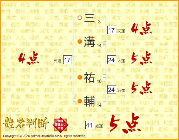 三溝祐輔さんの総運は41画の5点!