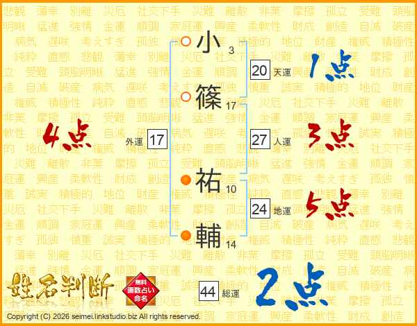 小(3画)篠(17画) 祐(10画)輔(14画)