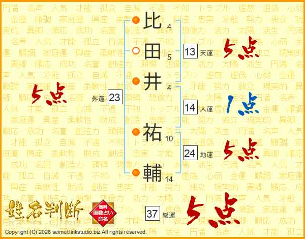 比田井祐輔さんの総運は37画の5点!