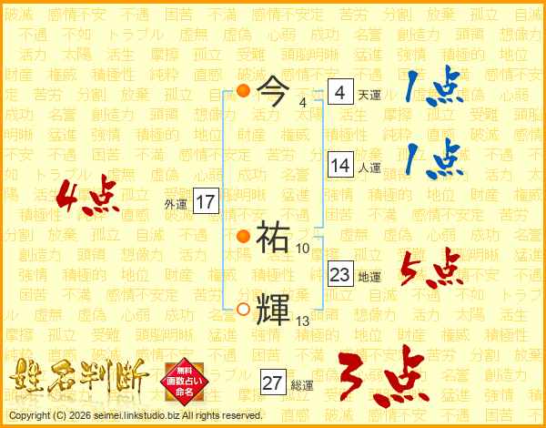今(4画) 祐(10画)輝(13画)