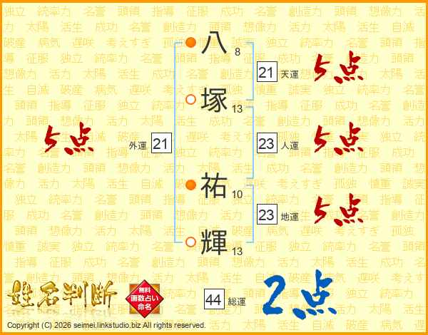 八塚祐輝さんの総運は44画の2点!