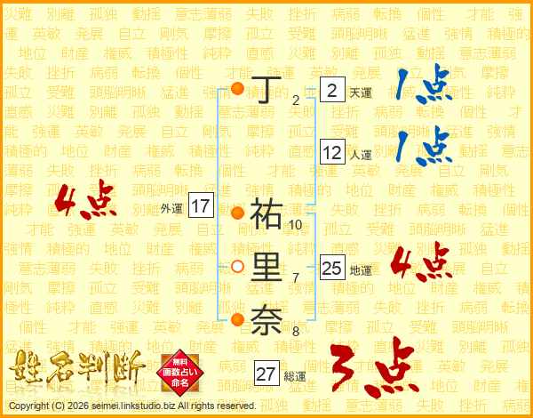 丁祐里奈さんの外運は17画の4点!
