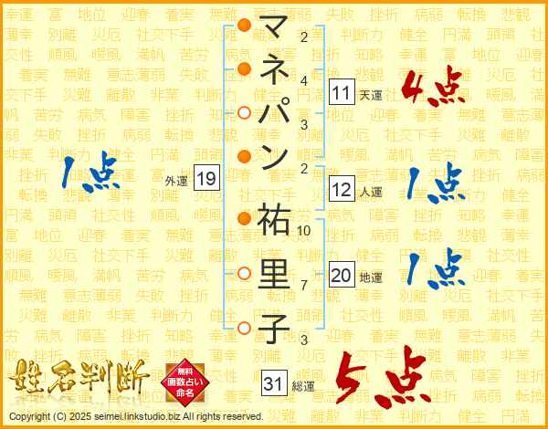 マネパン祐里子さんの総運は31画の5点!