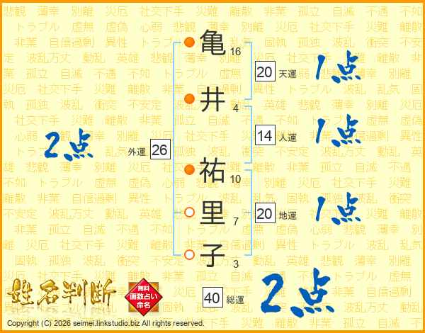 亀井祐里子さんの総運は40画の2点!