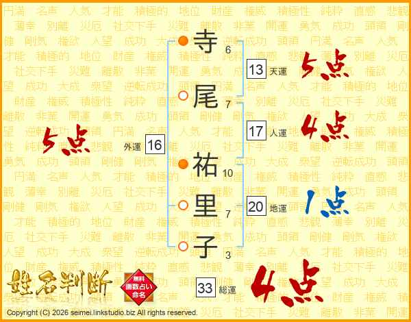 寺尾祐里子さんの総運は33画の4点!