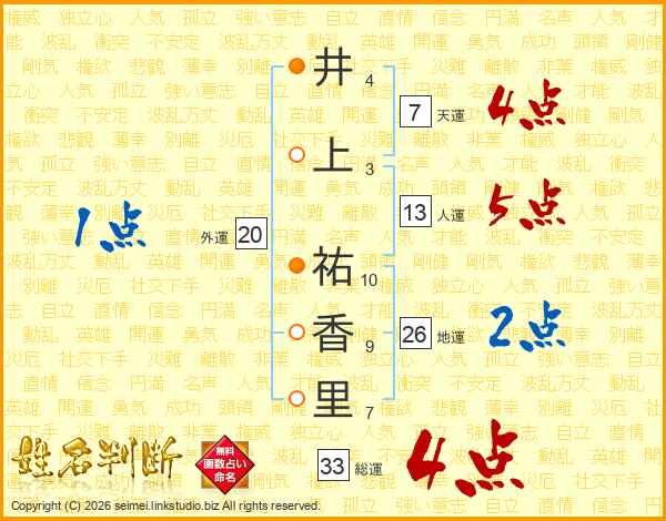井上祐香里さんの総運は33画の4点!