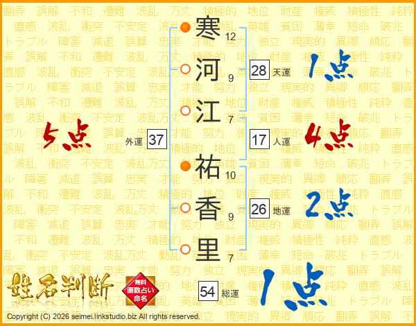 寒河江祐香里さんの総運は54画の1点!