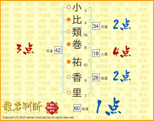 小比類巻祐香里さんの総運は60画の1点!