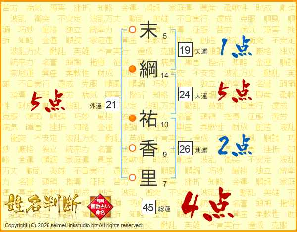 末綱祐香里さんの総運は45画の4点!