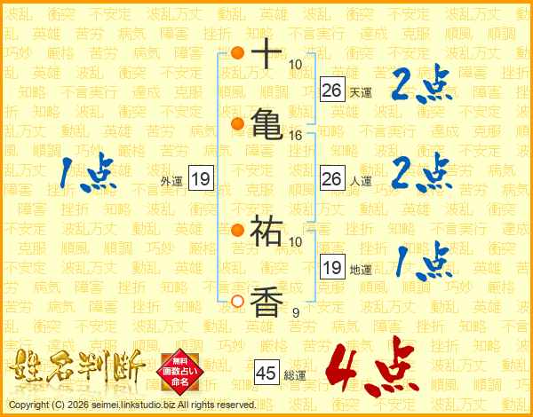 十(10画)亀(16画) 祐(10画)香(9画)