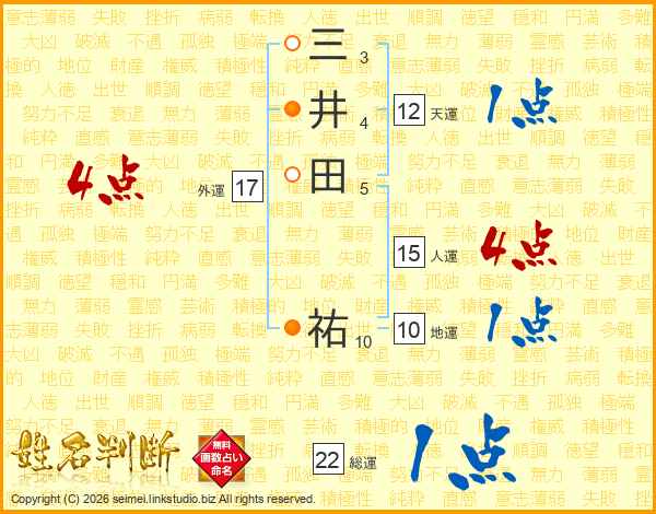 三井田祐さんの人運は15画の4点!